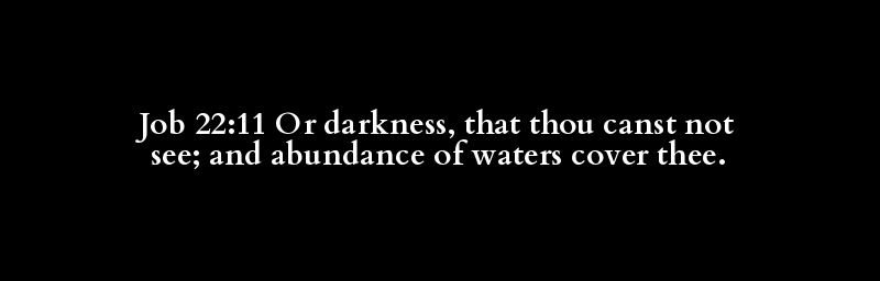 Job 22:11 Or darkness, that thou canst not see; and abundance of waters cover thee.