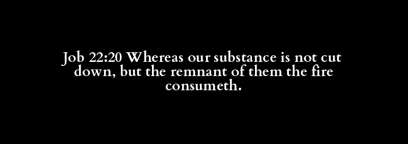 Job 22:20 Whereas our substance is not cut down, but the remnant of them the fire consumeth.