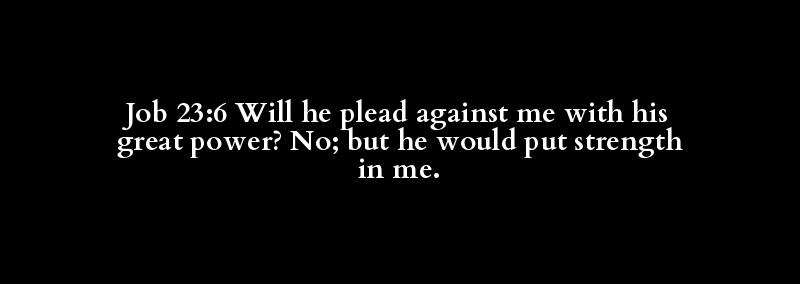Job 23:6 Will he plead against me with his great power? No; but he would put strength in me.
