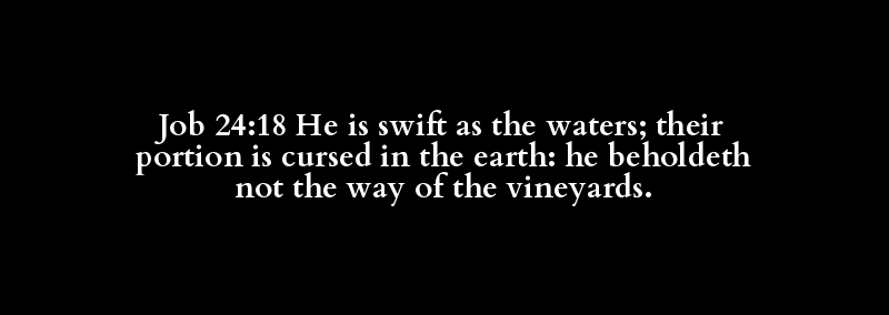 Job 24:18 He is swift as the waters; their portion is cursed in the earth: he beholdeth not the way of the vineyards.