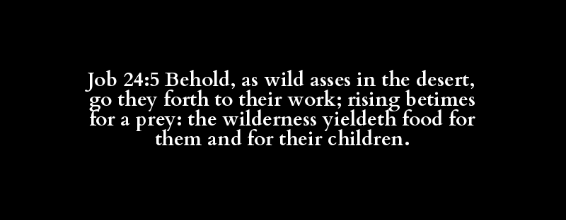 Job 24:5 Behold, as wild asses in the desert, go they forth to their work; rising betimes for a prey: the wilderness yieldeth food for them and for their children.