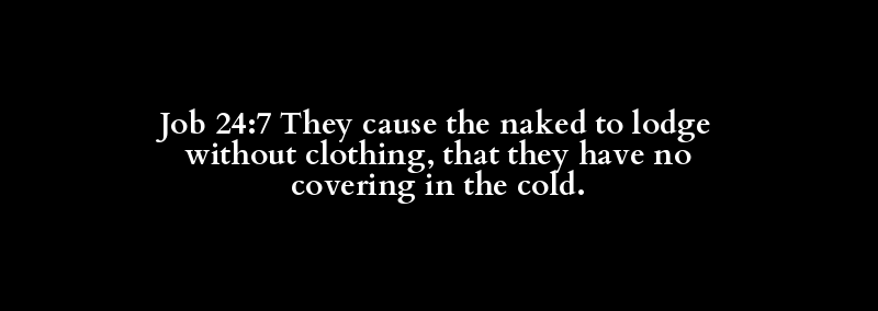 Job 24:7 They cause the naked to lodge without clothing, that they have no covering in the cold.