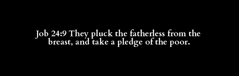 Job 24:9 They pluck the fatherless from the breast, and take a pledge of the poor.