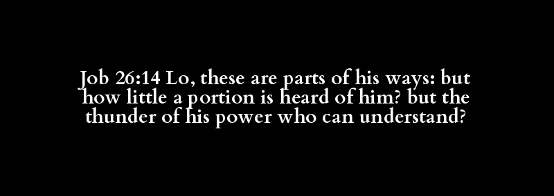 Job 26:14 Lo, these are parts of his ways: but how little a portion is heard of him? but the thunder of his power who can understand?