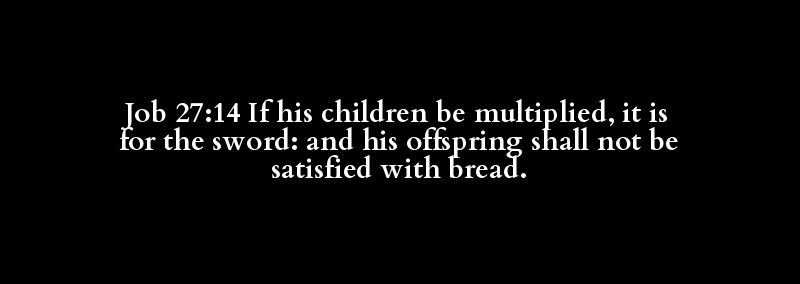 Job 27:14 If his children be multiplied, it is for the sword: and his offspring shall not be satisfied with bread.