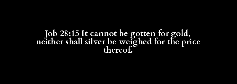 Job 28:15 It cannot be gotten for gold, neither shall silver be weighed for the price thereof.