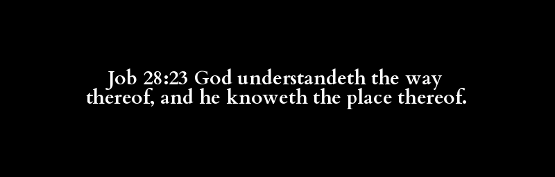 Job 28:23 God understandeth the way thereof, and he knoweth the place thereof.