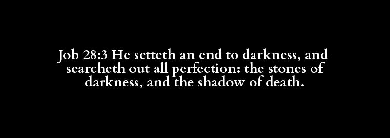 Job 28:3 He setteth an end to darkness, and searcheth out all perfection: the stones of darkness, and the shadow of death.