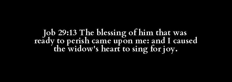 Job 29:13 The blessing of him that was ready to perish came upon me: and I caused the widow's heart to sing for joy.