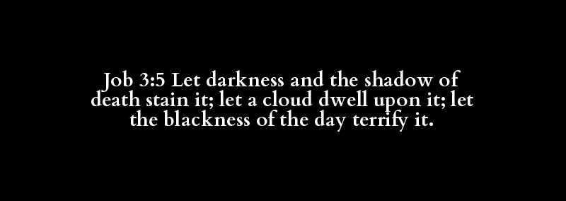 Job 3:5 Let darkness and the shadow of death stain it; let a cloud dwell upon it; let the blackness of the day terrify it.