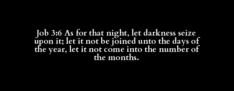 Job 3:6 As for that night, let darkness seize upon it; let it not be joined unto the days of the year, let it not come into the number of the months.