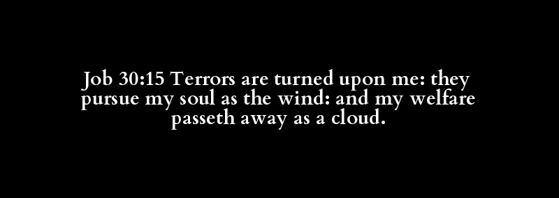 Job 30:15 Terrors are turned upon me: they pursue my soul as the wind: and my welfare passeth away as a cloud.