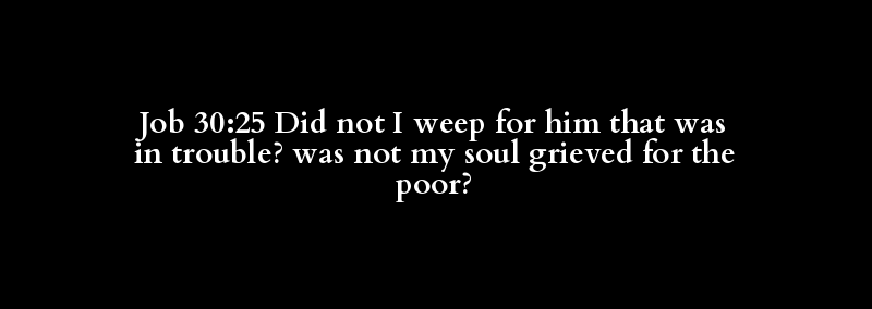 Job 30:25 Did not I weep for him that was in trouble? was not my soul grieved for the poor?