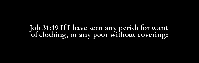 Job 31:19 If I have seen any perish for want of clothing, or any poor without covering;