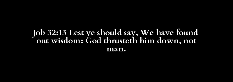 Job 32:13 Lest ye should say, We have found out wisdom: God thrusteth him down, not man.
