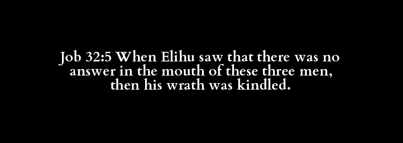 Job 32:5 When Elihu saw that there was no answer in the mouth of these three men, then his wrath was kindled.