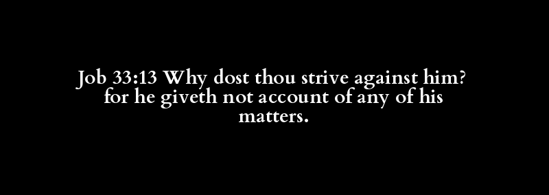 Job 33:13 Why dost thou strive against him? for he giveth not account of any of his matters.