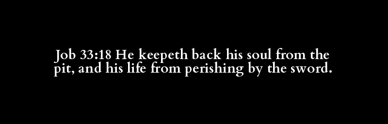 Job 33:18 He keepeth back his soul from the pit, and his life from perishing by the sword.