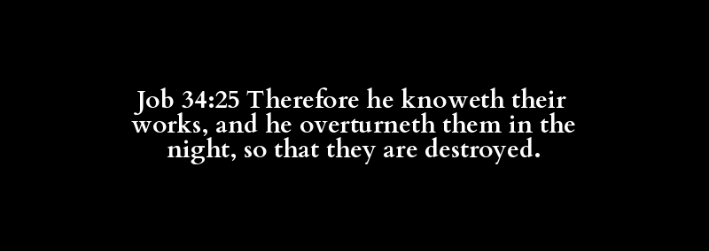 Job 34:25 Therefore he knoweth their works, and he overturneth them in the night, so that they are destroyed.