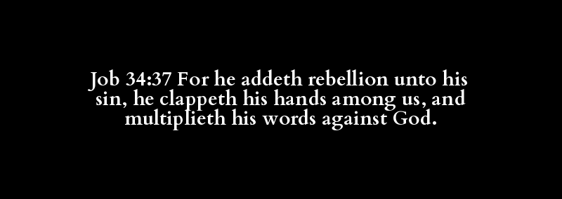 Job 34:37 For he addeth rebellion unto his sin, he clappeth his hands among us, and multiplieth his words against God.