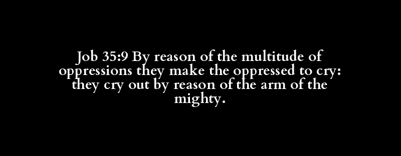 Job 35:9 By reason of the multitude of oppressions they make the oppressed to cry: they cry out by reason of the arm of the mighty.