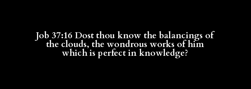 Job 37:16 Dost thou know the balancings of the clouds, the wondrous works of him which is perfect in knowledge?