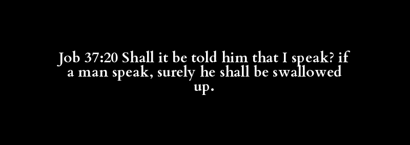 Job 37:20 Shall it be told him that I speak? if a man speak, surely he shall be swallowed up.