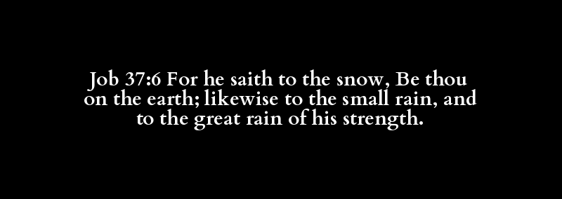 Job 37:6 For he saith to the snow, Be thou on the earth; likewise to the small rain, and to the great rain of his strength.