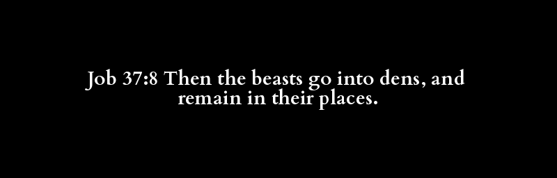 Job 37:8 Then the beasts go into dens, and remain in their places.