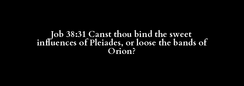 Job 38:31 Canst thou bind the sweet influences of Pleiades, or loose the bands of Orion?