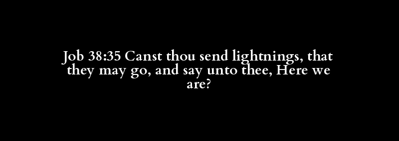 Job 38:35 Canst thou send lightnings, that they may go, and say unto thee, Here we are?