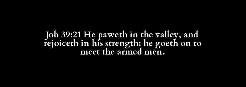 Job 39:21 He paweth in the valley, and rejoiceth in his strength: he goeth on to meet the armed men.