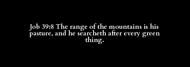 Job 39:8 The range of the mountains is his pasture, and he searcheth after every green thing.