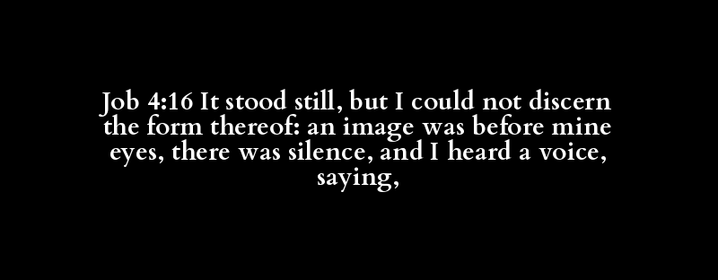 Job 4:16 It stood still, but I could not discern the form thereof: an image was before mine eyes, there was silence, and I heard a voice, saying,