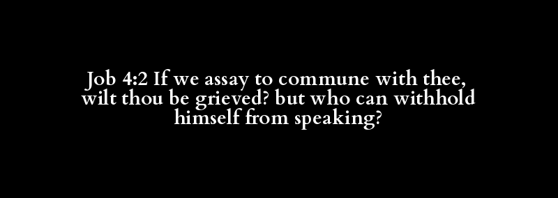 Job 4:2 If we assay to commune with thee, wilt thou be grieved? but who can withhold himself from speaking?