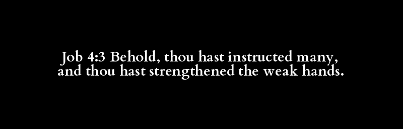 Job 4:3 Behold, thou hast instructed many, and thou hast strengthened the weak hands.