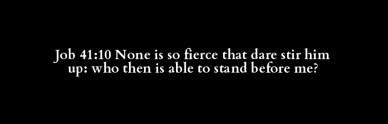Job 41:10 None is so fierce that dare stir him up: who then is able to stand before me?