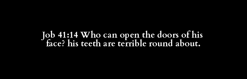 Job 41:14 Who can open the doors of his face? his teeth are terrible round about.