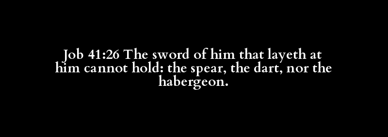 Job 41:26 The sword of him that layeth at him cannot hold: the spear, the dart, nor the habergeon.
