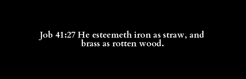 Job 41:27 He esteemeth iron as straw, and brass as rotten wood.