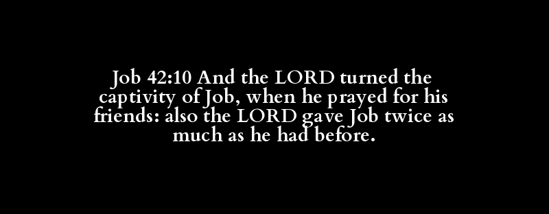 Job 42:10 And the LORD turned the captivity of Job, when he prayed for his friends: also the LORD gave Job twice as much as he had before.