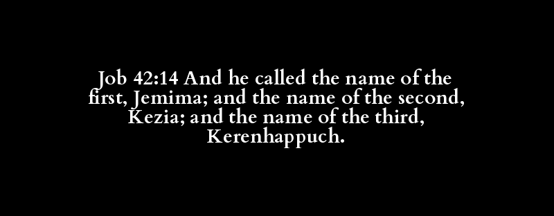 Job 42:14 And he called the name of the first, Jemima; and the name of the second, Kezia; and the name of the third, Kerenhappuch.