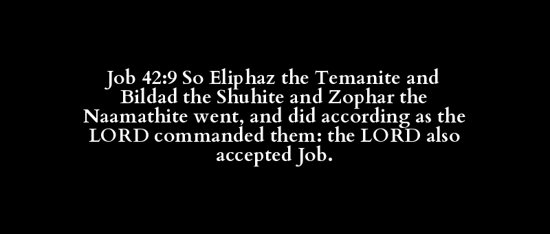 Job 42:9 So Eliphaz the Temanite and Bildad the Shuhite and Zophar the Naamathite went, and did according as the LORD commanded them: the LORD also accepted Job.