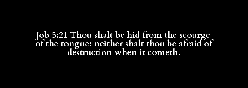 Job 5:21 Thou shalt be hid from the scourge of the tongue: neither shalt thou be afraid of destruction when it cometh.