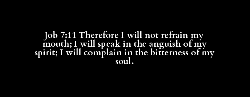 Job 7:11 Therefore I will not refrain my mouth; I will speak in the anguish of my spirit; I will complain in the bitterness of my soul.