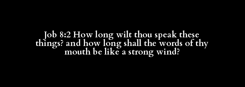 Job 8:2 How long wilt thou speak these things? and how long shall the words of thy mouth be like a strong wind?