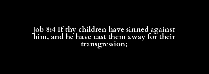 Job 8:4 If thy children have sinned against him, and he have cast them away for their transgression;