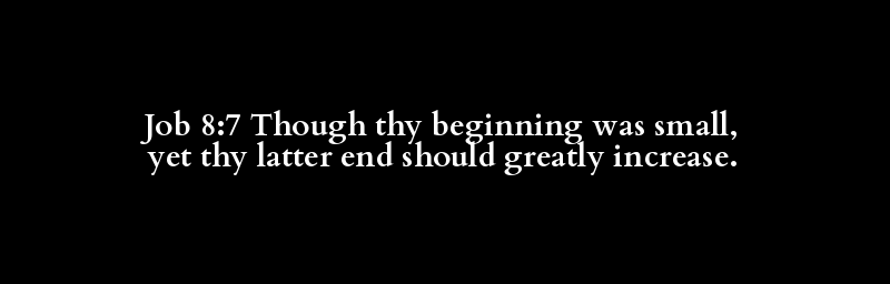 Job 8:7 Though thy beginning was small, yet thy latter end should greatly increase.