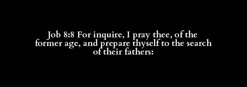 Job 8:8 For inquire, I pray thee, of the former age, and prepare thyself to the search of their fathers: