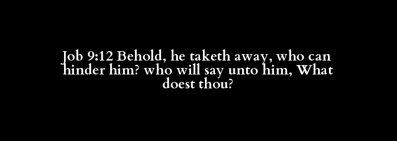 Job 9:12 Behold, he taketh away, who can hinder him? who will say unto him, What doest thou?